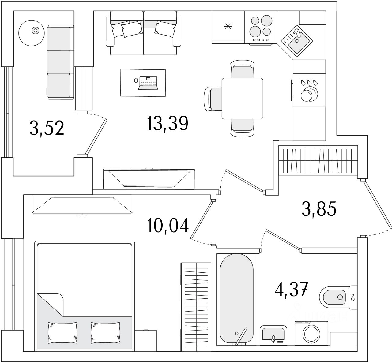 Кухни-гостиные с угловым остеклением. Просторные кухни-гостиные площадью более 20 м². Студии с двумя окнами. Ванные с окном Clerestory. Кухни-гостиные с выделенной нишей под кухню. Спальни с выделенной многофункциональной зоной, в которой можно организовать свой идеальный уголок. Квартиры с просторными лоджиями правильной квадратной формы.