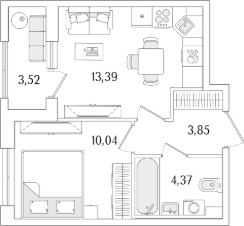 Квартира находится в 13 этажном доме, в Гранат - Корпус К1 на 1 этаже. Общая площадь квартиры 33,41 кв.м.
