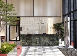 Двусветный холл связывает пространства внутреннего двора и улицы, является порталом в обособленный тихий двор жилого комплекса. Высокие витражи обеспечивают просматриваемость пространства, приглашая пройти внутрь.