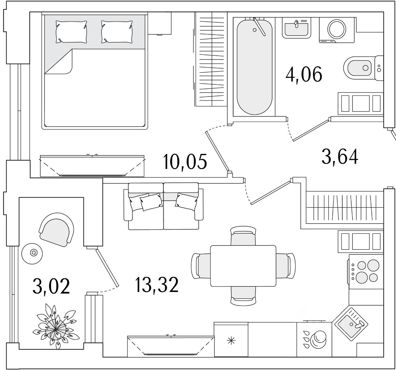 Кухни-гостиные с угловым остеклением. Просторные кухни-гостиные площадью более 20 м². Студии с двумя окнами. Ванные с окном Clerestory. Кухни-гостиные с выделенной нишей под кухню. Спальни с выделенной многофункциональной зоной, в которой можно организовать свой идеальный уголок. Квартиры с просторными лоджиями правильной квадратной формы.