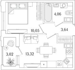 Квартира находится в 13 этажном доме, в Гранат - Корпус К1 на 5 этаже. Общая площадь квартиры 32,58 кв.м.