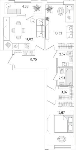 Кухни-гостиные с угловым остеклением. Просторные кухни-гостиные площадью более 20 м². Студии с двумя окнами. Ванные с окном Clerestory. Кухни-гостиные с выделенной нишей под кухню. Спальни с выделенной многофункциональной зоной, в которой можно организовать свой идеальный уголок. Квартиры с просторными лоджиями правильной квадратной формы.