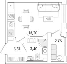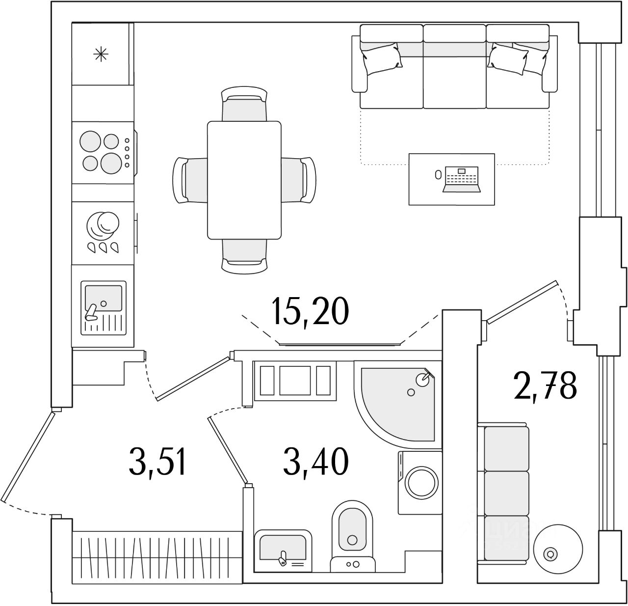 Квартира находится в 13 этажном доме, в Гранат - Корпус К1 на 7 этаже. Общая площадь квартиры 23,50 кв.м.