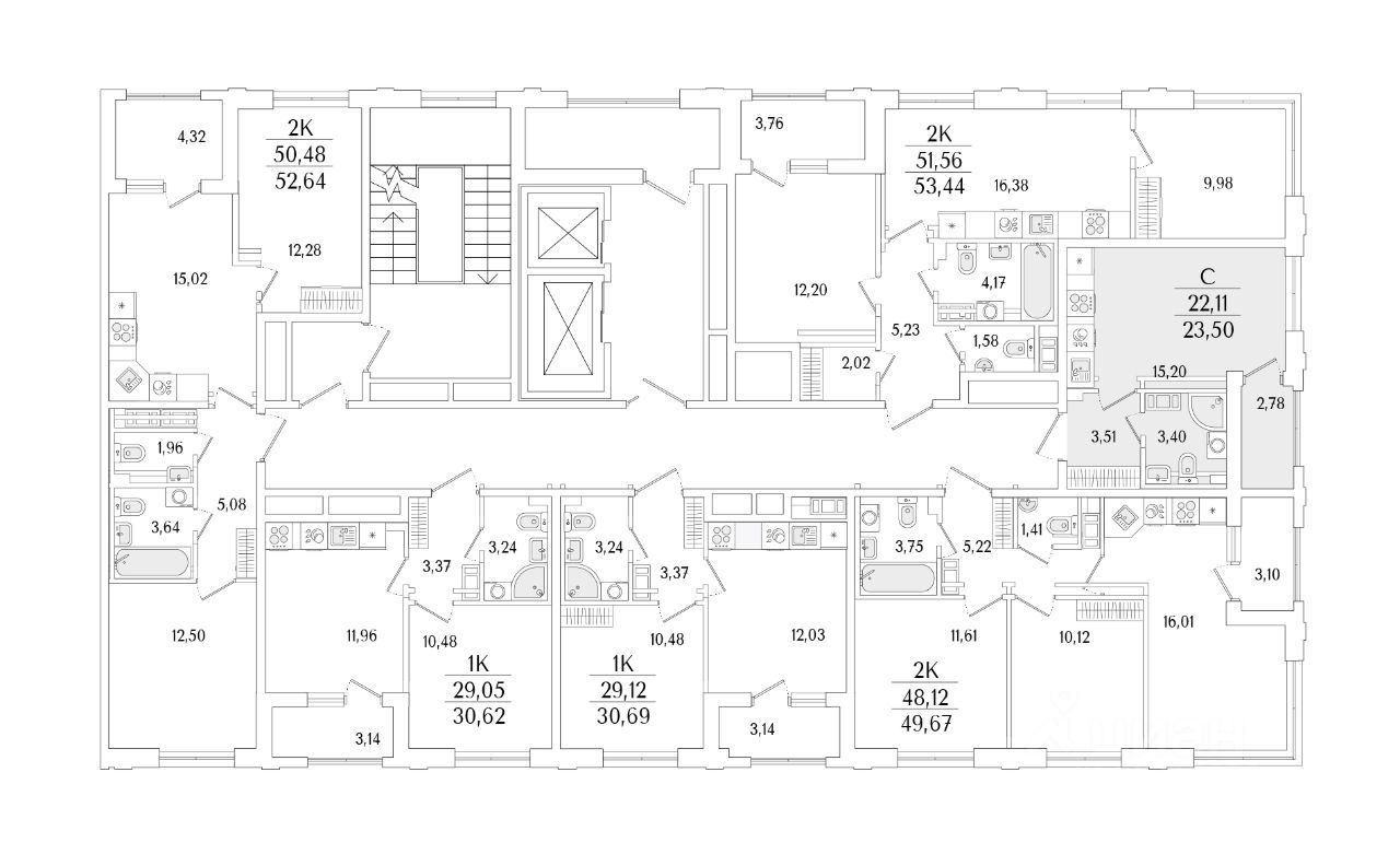 Кухни-гостиные с угловым остеклением. Просторные кухни-гостиные площадью более 20 м². Студии с двумя окнами. Ванные с окном Clerestory. Кухни-гостиные с выделенной нишей под кухню. Спальни с выделенной многофункциональной зоной, в которой можно организовать свой идеальный уголок. Квартиры с просторными лоджиями правильной квадратной формы.