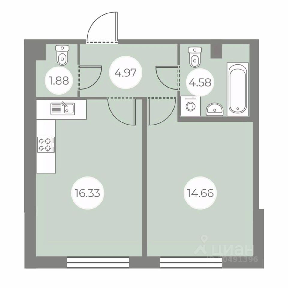 Общая площадь42,42 м²