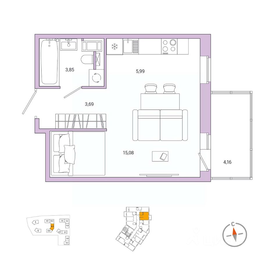 15,1 м²