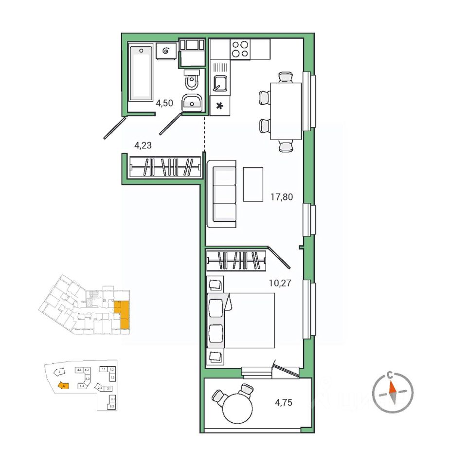 17,8 м²
