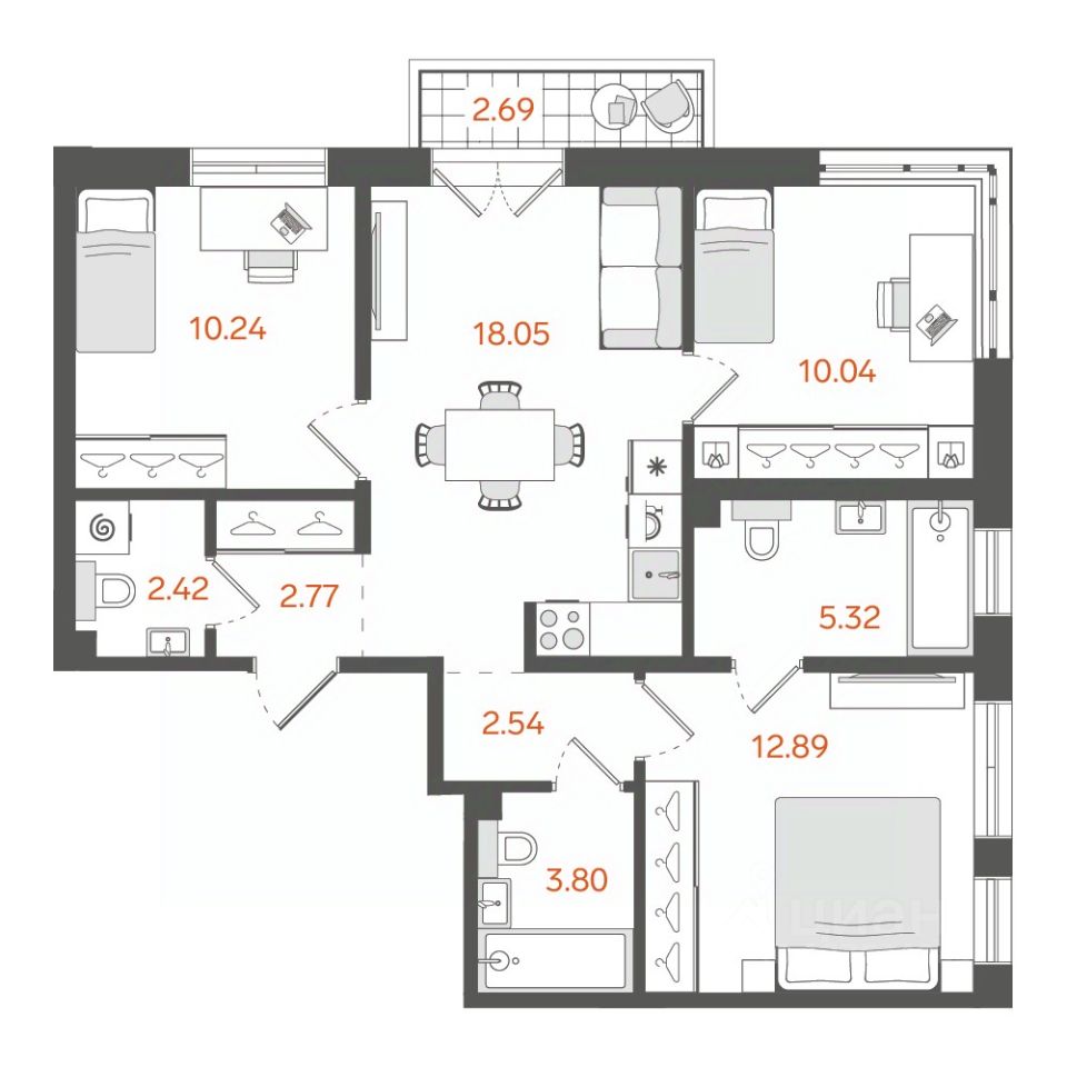 18,1 м²