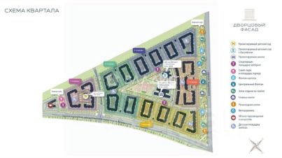 На территории — школа и два детских сада с бассейнами.