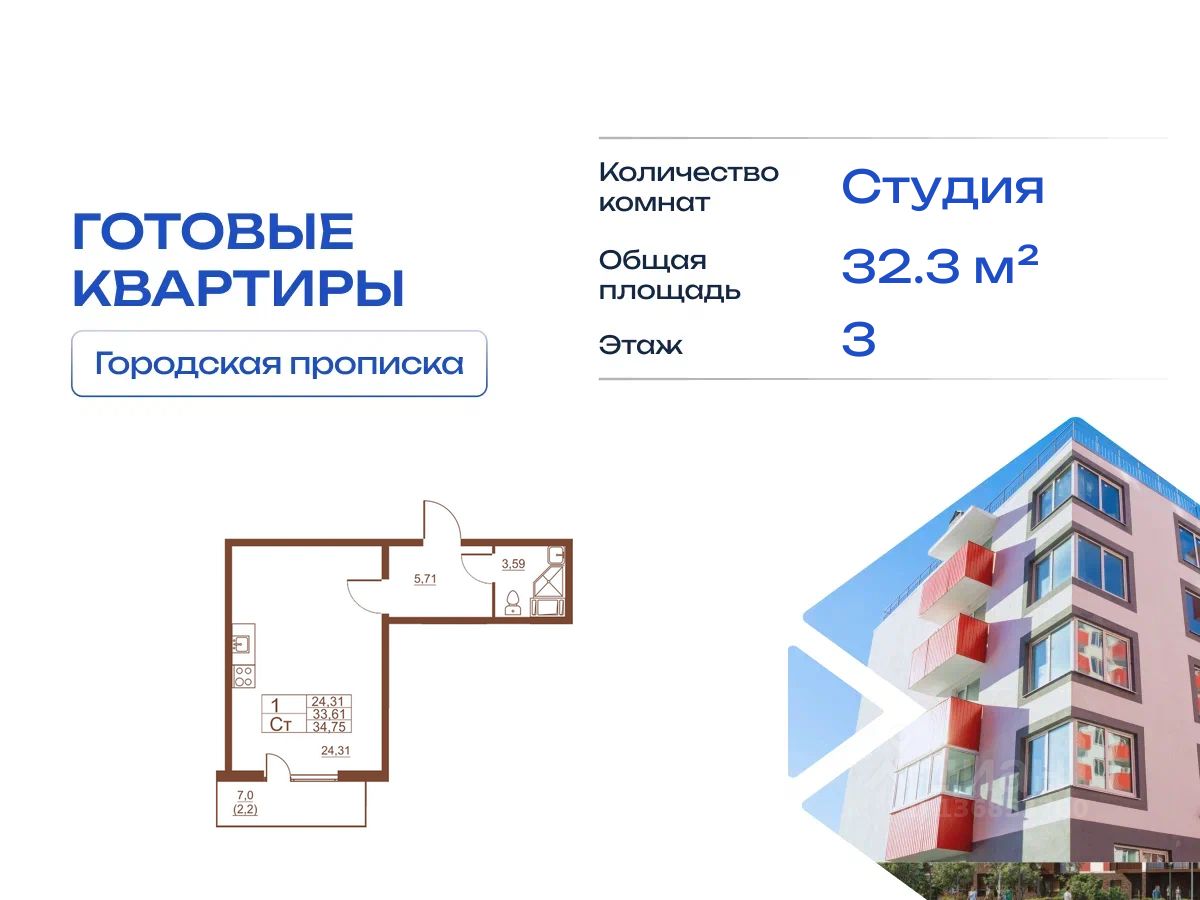 Продается готовая квартира студия в жилом комплексе Полет от ГК СТОУН нa 3 этаже. Общaя площадь cоcтaвляeт 32.30 кв. м.