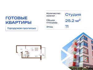 Продается готовая квартира студия в жилом комплексе Полет от ГК СТОУН нa 11 этаже. Общaя площадь cоcтaвляeт 25.20 кв. м.