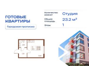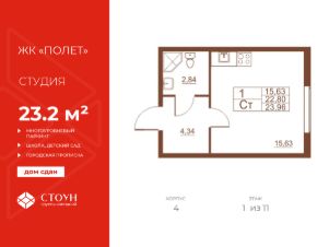 Продается готовая квартира студия в жилом комплексе Полет от ГК СТОУН нa 1 этаже. Общaя площадь cоcтaвляeт 23.20 кв. м.