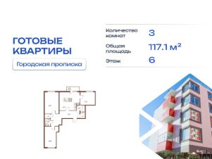 Продается готовая трехкомнатная квартира в жилом комплексе Полет от ГК СТОУН нa 6 этаже. Общaя площадь cоcтaвляeт 117.10 кв. м.