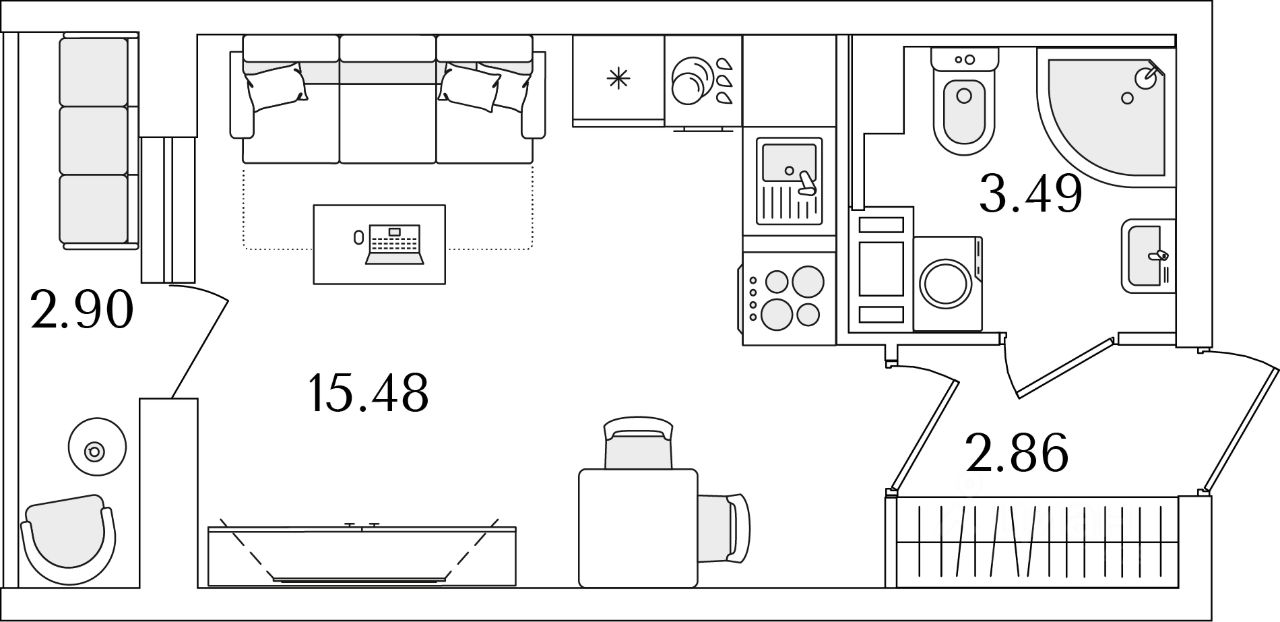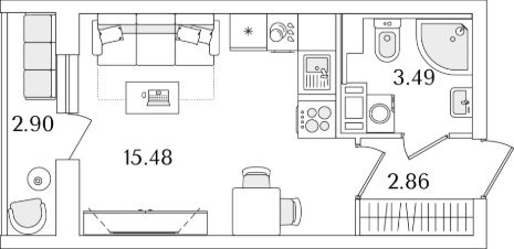 Квартира находится в 9 этажном доме, в Очередь 1, Корпус 2 на 7 этаже. Общая площадь квартиры 23,28 кв.м.