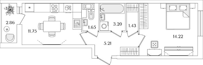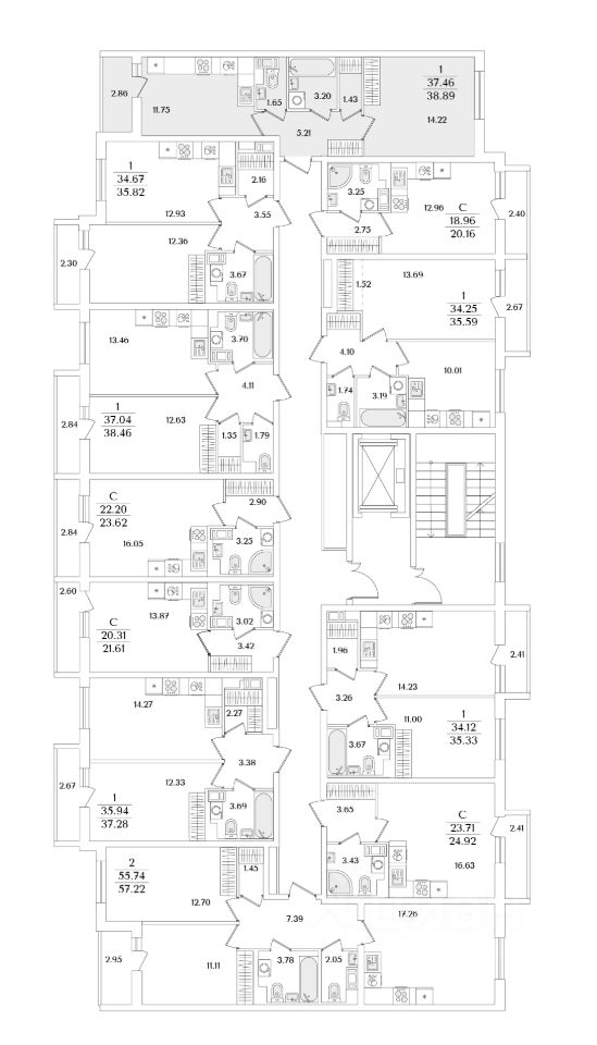 Квартира находится в 9 этажном доме, в Очередь 1, Корпус 2 на 3 этаже. Общая площадь квартиры 38,89 кв.м.