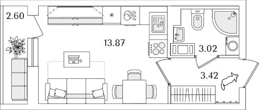 Квартира находится в 9 этажном доме, в Очередь 1, Корпус 2 на 4 этаже. Общая площадь квартиры 21,61 кв.м.