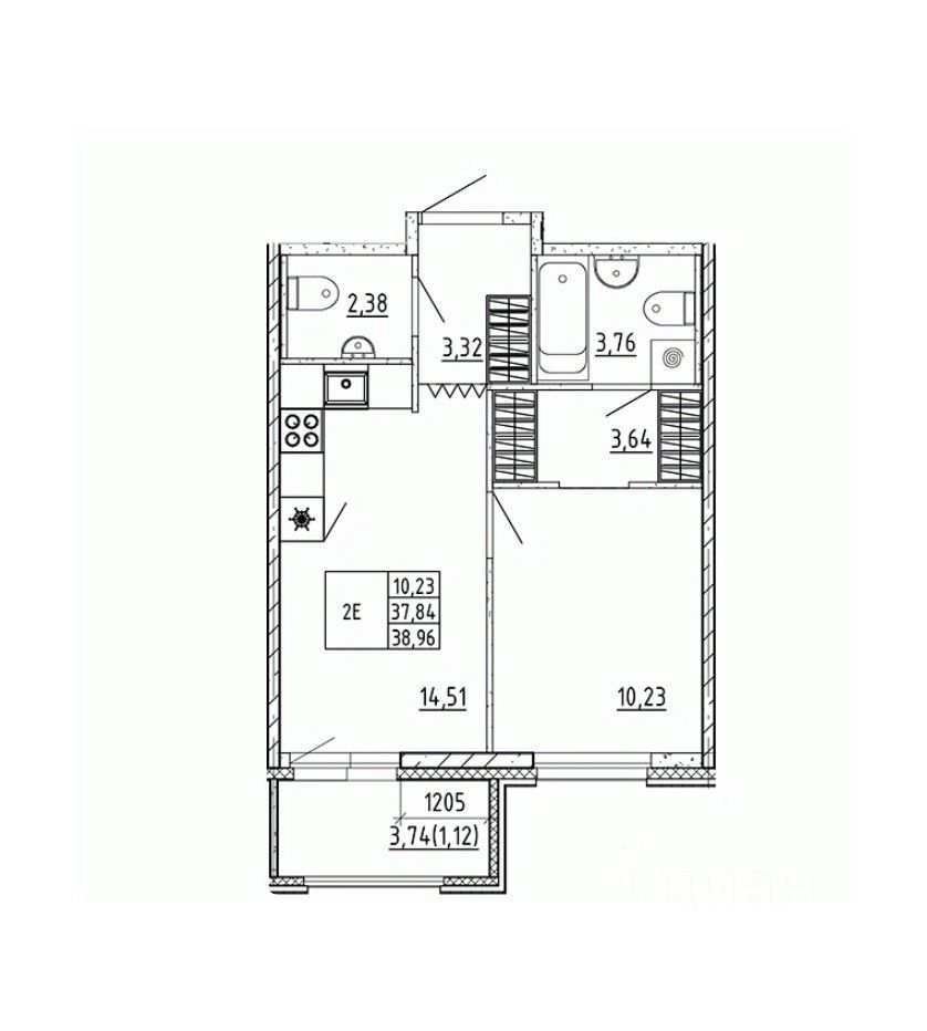 Эта квартира с очень хорошей планировкой, общей площадью 39,0 кв.м., идеально подойдет для тех, кто ищет комфорт и спокойствие в непосредственной близости от города.