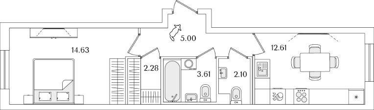 Квартира находится в 9 этажном доме, в Очередь 1, Корпус 2 на 2 этаже. Общая площадь квартиры 40,23 кв.м.