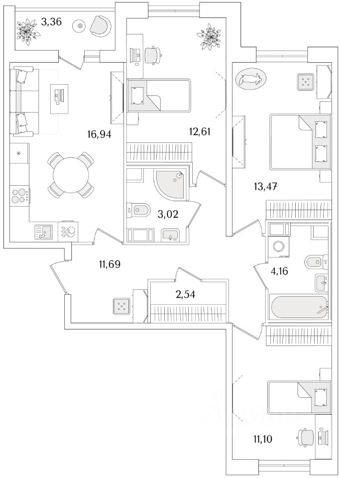 Продаётся 3к.кв. в ЖК Кинопарк от застройщика Холдинг "РСТИ" (Росстройинвест).