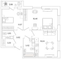 Квартира находится в 9 этажном доме, в Очередь 2, Корпус 2 на 5 этаже. Общая площадь квартиры 62,94 кв.м.