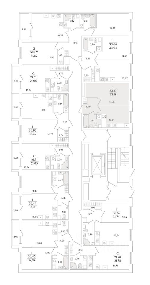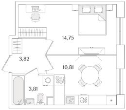 Квартира находится в 9 этажном доме, в Очередь 2, Корпус 1 на 2 этаже. Общая площадь квартиры 33,19 кв.м.