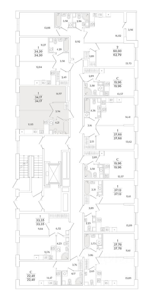 Квартира находится в 9 этажном доме, в Очередь 2, Корпус 1 на 2 этаже. Общая площадь квартиры 34,17 кв.м.