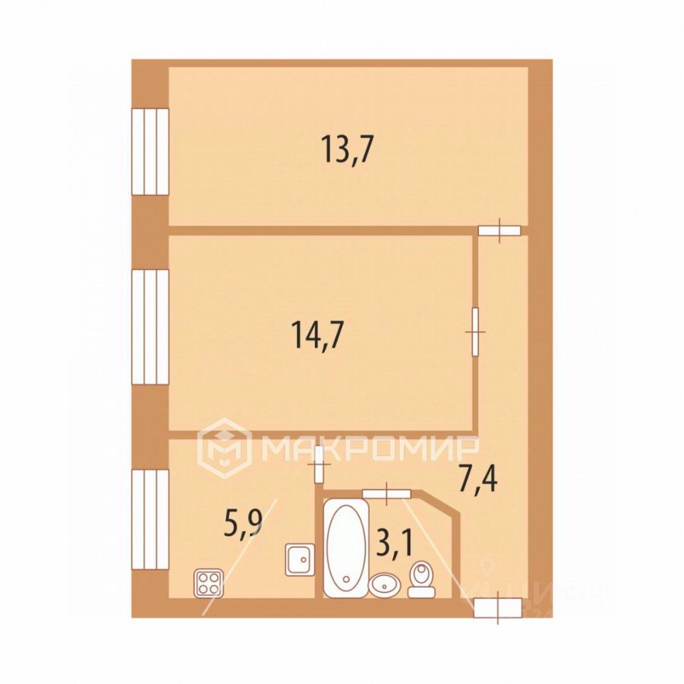 изолированные комнаты правильной формы 14,7 кв.м. и 13,7 кв.м.