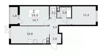 • Общая площадь — 59 м²
