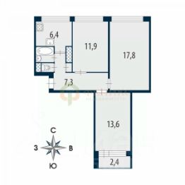+ Комнаты 11,9; 13,6; 17,8 м.кв