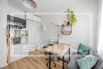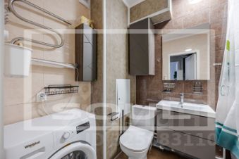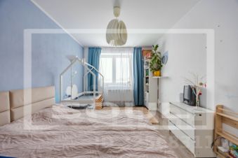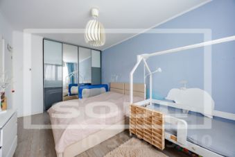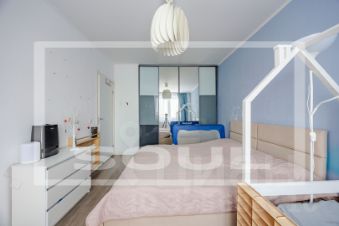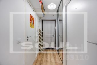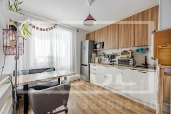 - современный ремонт: обои требуют обновления, но на полу постелен качественный ламинат, есть много мест для хранения: функциональный шкафы с гардеробной системой.