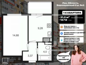 Арт. 128547940 Продается 1 ккв в 15 минутах пешком от Девяткино!