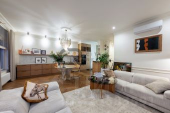 Высокие потолки (3 метра), большие окна и качественные материалы отделки создают ощущение пространства и света.