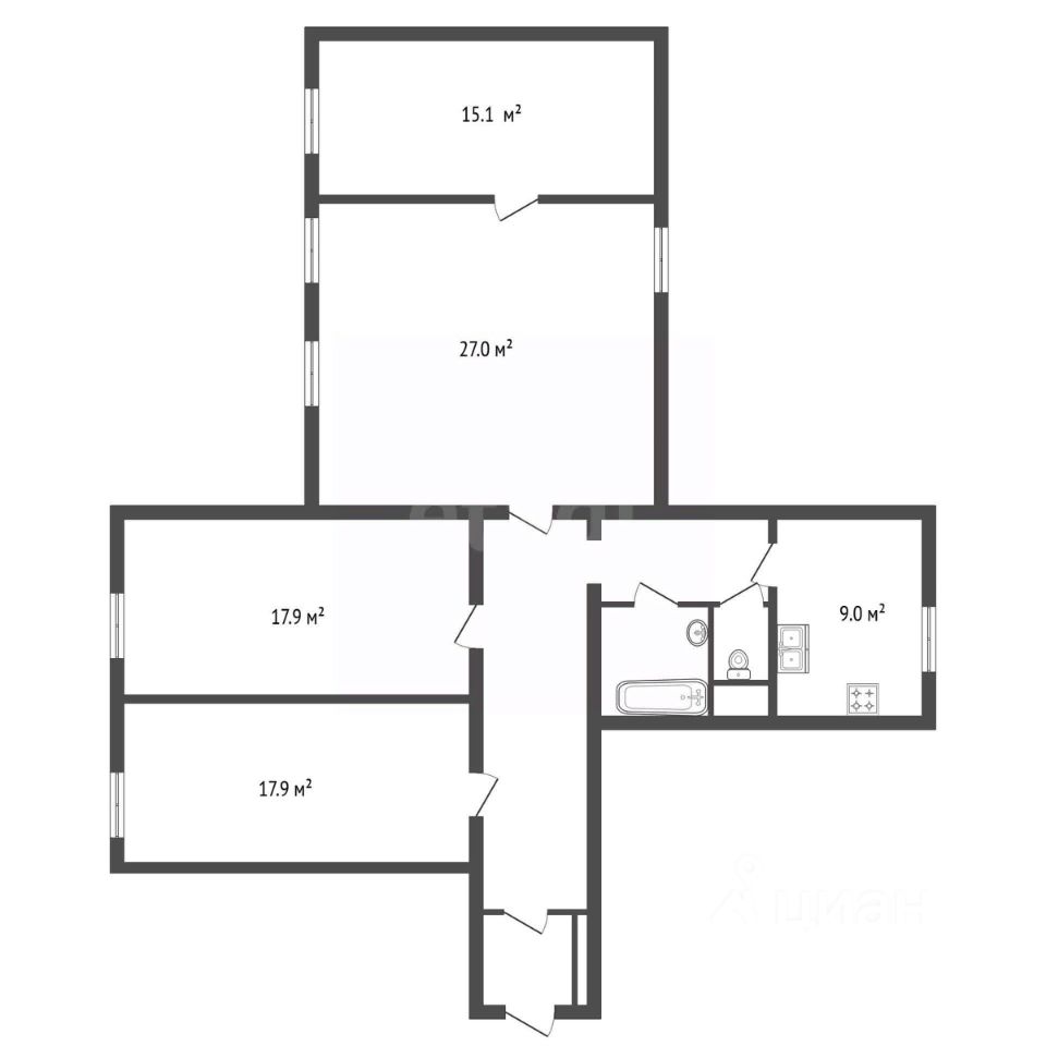 Площадь 2х комнат- 42.1 кв.м.( комнаты 27кв.м. и 15,1кв.м.), общая площадь квартиры 109,2 кв.м,, в личной собственности 59 кв.м., что дает возможность комфортного расположения и дополнительного пользования общей площади квартиры.