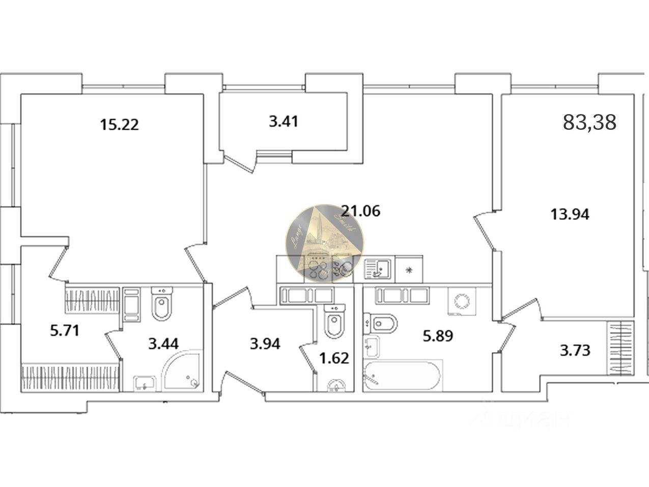 - Общая площадь квартиры 83.38 м2