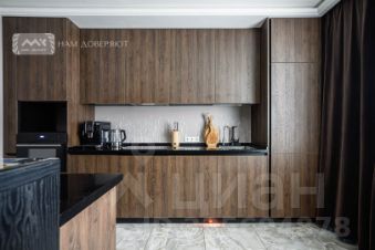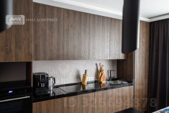 Просторная кухня-гостиная 20 м2 со встроенной стильной мебелью (фасад "под дерево" пр-во Австрия) и фурнитурой Gola . Вид из окна во двор. Эффектный остров из черного шпона выполняет роль дополнительной рабочей поверхности и барной стойки. Имеются широкий раскладной диван и кресло.