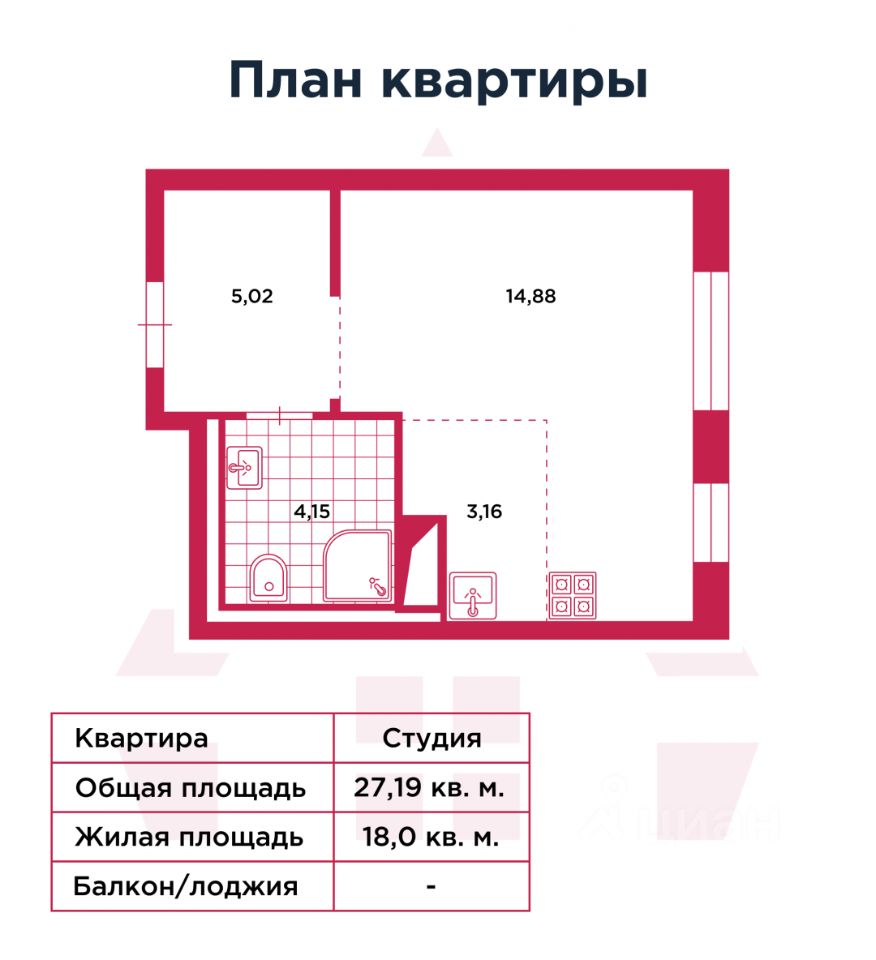 • Общая площадь: 27,21 м² (жилая — 18,3 м²), 5/9 этаж.