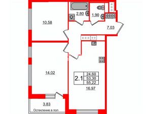 Удобная, классическая, функциональная европланировка, большая кухня-гостиная 16,97 м2, вместительная прихожая 7.03м2. Общая площадь квартиры - 59 м2 с учетом лоджии, жилая 24,60 м2, высота потолка 3.00м.
