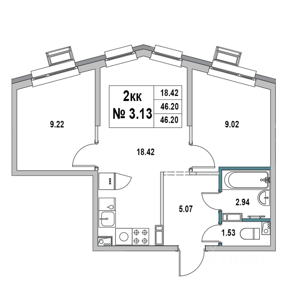 Продаётся 2-комнатная квартира в строящемся доме (Дом 1), срок сдачи: I-кв. 2026, общей площадью 46.2 кв.м., на 3 этаже. Новый жилой дом от застройщика "Унистрой" расположен по адресу Ленинградская область, Выборг, 2-я Южная улица.