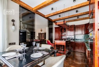 Квартира общей площадью 165 метров, состоит из кухни, просторной гостиной, три изолированные спальни, одна из них с гардеробной. Из каждой спальни можно выйти на балкон, есть также небольшая терасса. Высокие потолки 3 метра создают ощущение простора.