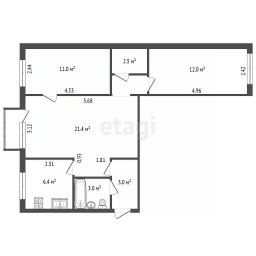 - 2 отдельных спальни, кухня 6,4 м², большая гостиная 21 м², совмещенный санузел с современной отделкой-
