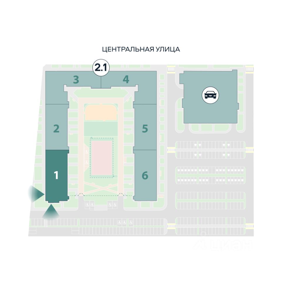 Уже построены два корпуса проекта, каждый двор автономен, сюда родители без боязни выпускают детей на прогулку. Этот проект идеален для старта молодой семьи.