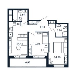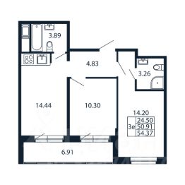 Прямая продажа от застройщика! Евро-трёшка 54.37 кв.м с кухней 14.44 кв.м с предчистовой отделкой на 3 этаже во 2-й очереди ЖК "Полис Новоселье".