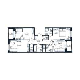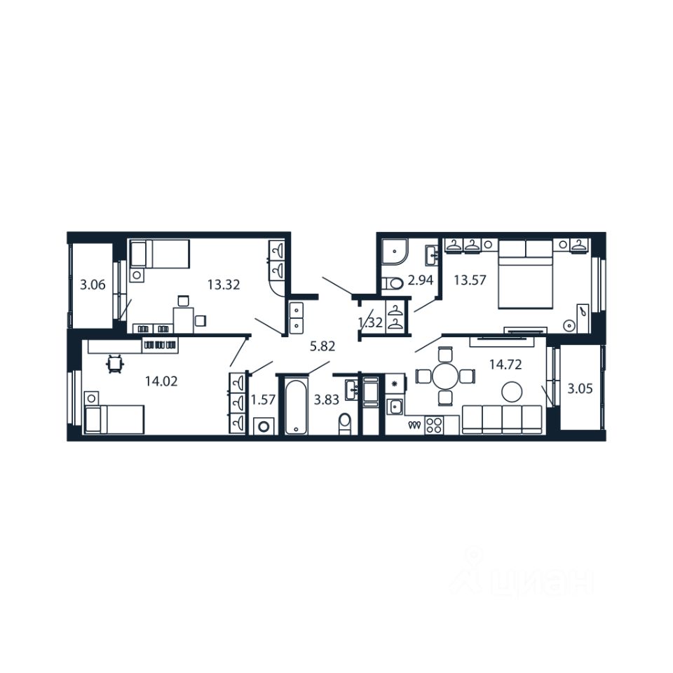 Прямая продажа от застройщика! Евро 4-комнатная 74.17 кв.м с кухней 14.72 кв.м с предчистовой отделкой на 3 этаже во 2-й очереди ЖК "Полис Новоселье".