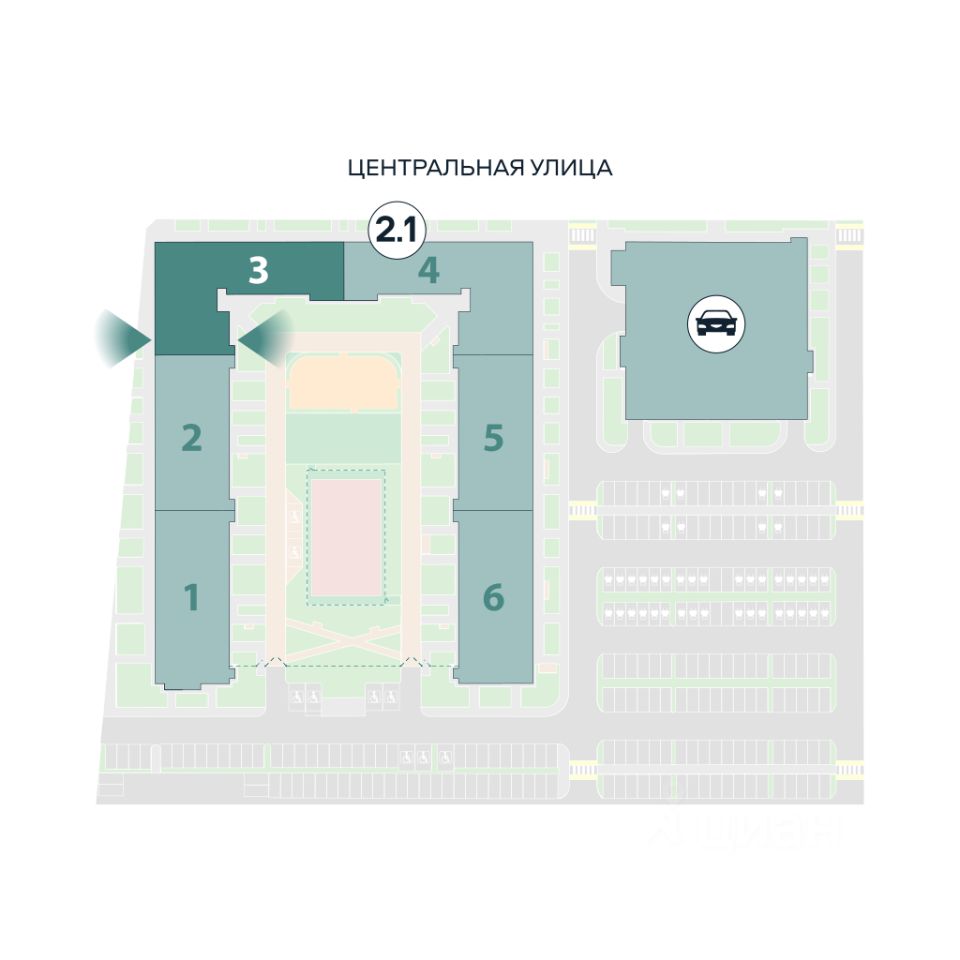 Уже построены два корпуса проекта, каждый двор автономен, сюда родители без боязни выпускают детей на прогулку. Этот проект идеален для старта молодой семьи.