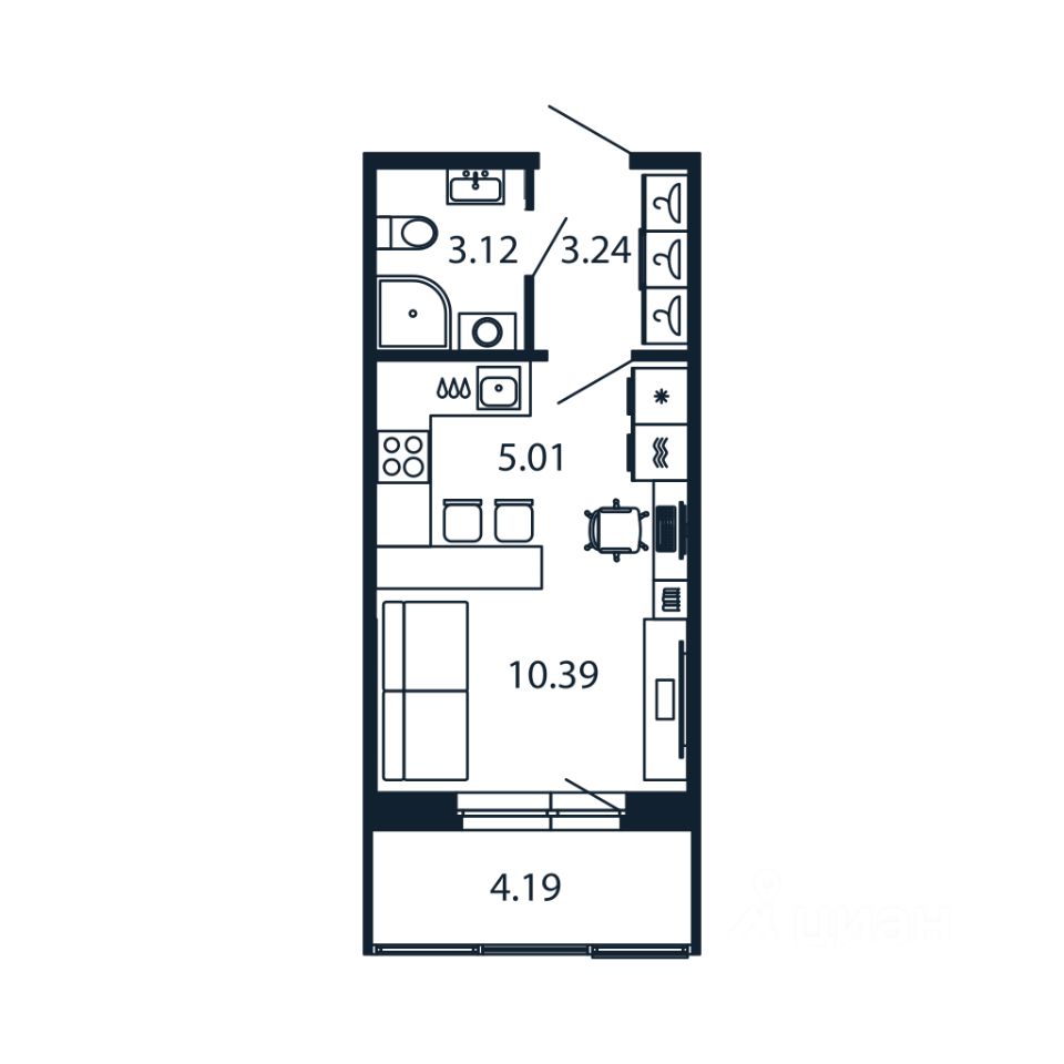 Прямая продажа от застройщика! Студия 23.86 кв.м с кухней 5.01 кв.м с предчистовой отделкой на 3 этаже во 2-й очереди ЖК "Полис Новоселье".
