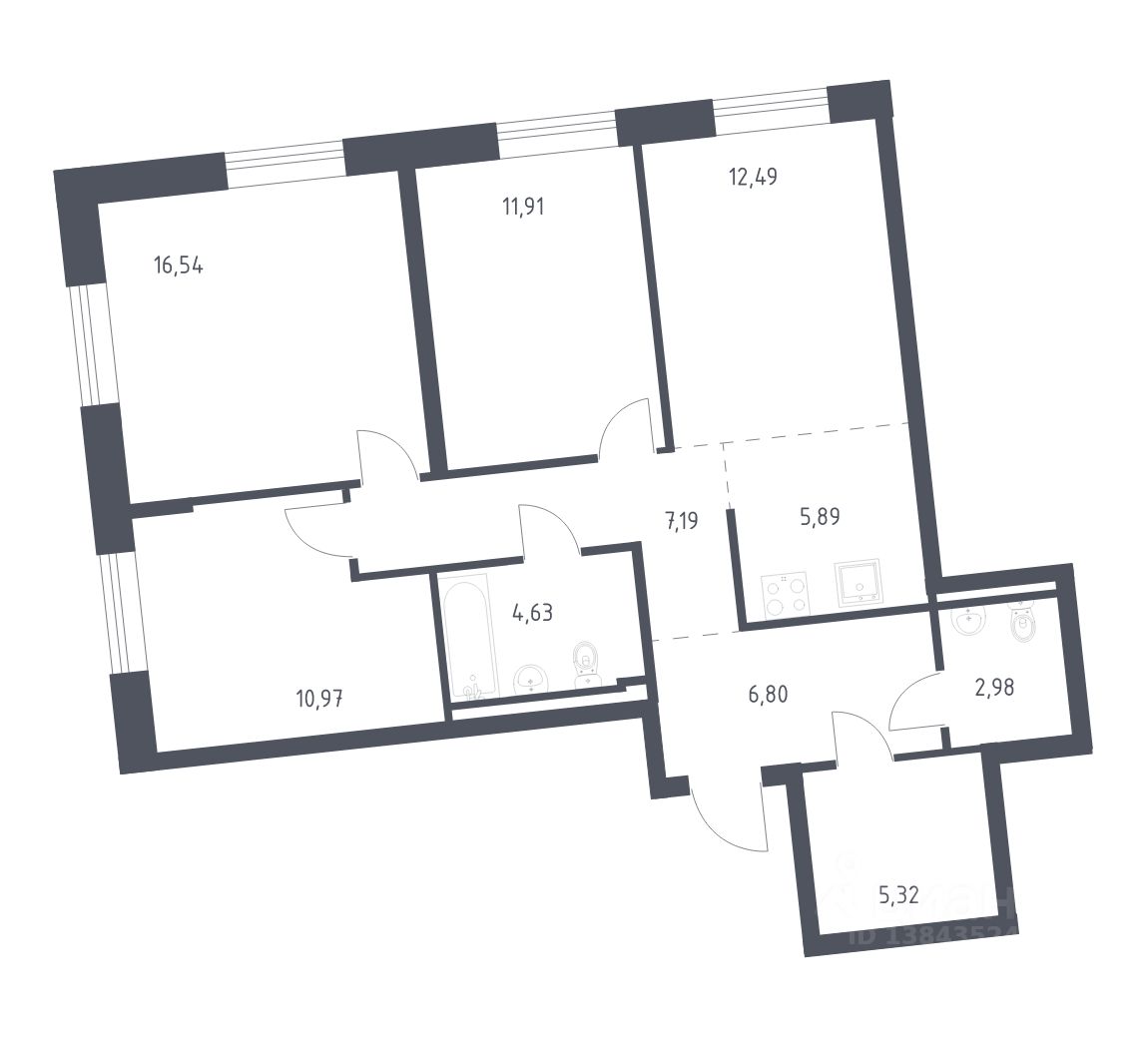 Квартира без отделки. Доступность опции "отделка" и возможность комплектации мебелью и декором уточняйте у застройщика.