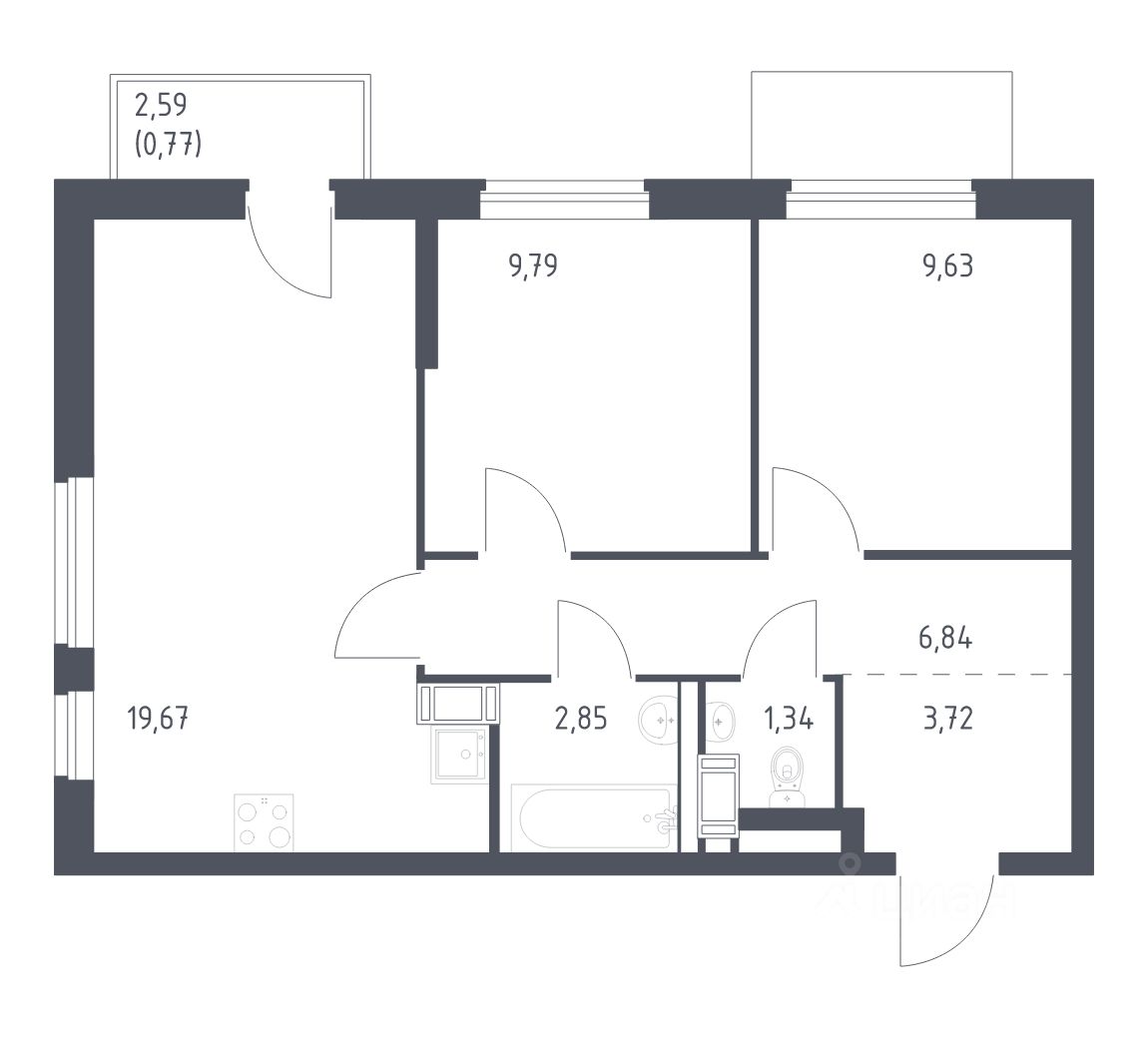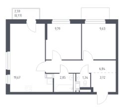 Квартира без отделки. Доступность опции "отделка" и возможность комплектации мебелью и декором уточняйте у застройщика.