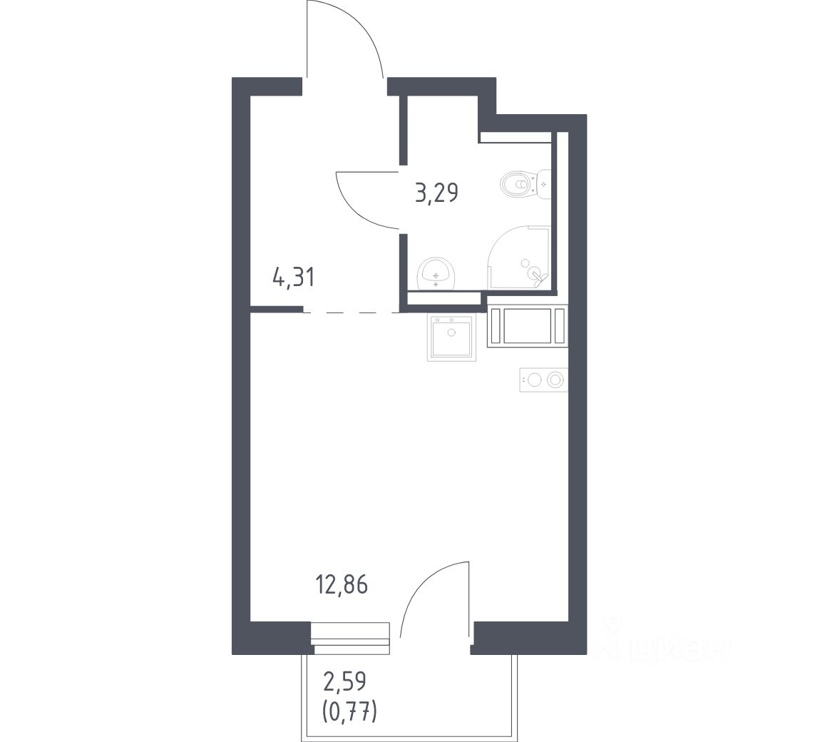 Квартира без отделки. Доступность опции "отделка" и возможность комплектации мебелью и декором уточняйте у застройщика.