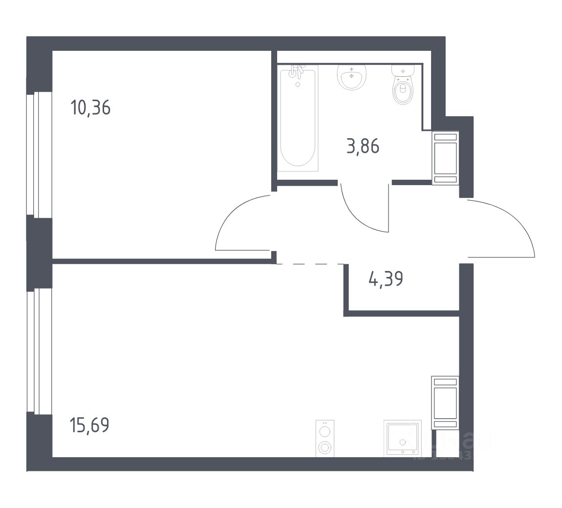 Квартира без отделки. Доступность опции "отделка" и возможность комплектации мебелью и декором уточняйте у застройщика.