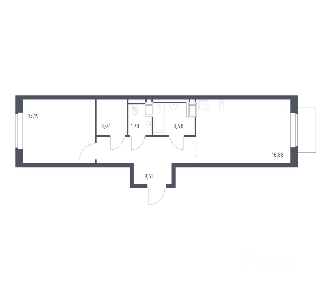 Квартира без отделки. Доступность опции "отделка" и возможность комплектации мебелью и декором уточняйте у застройщика.